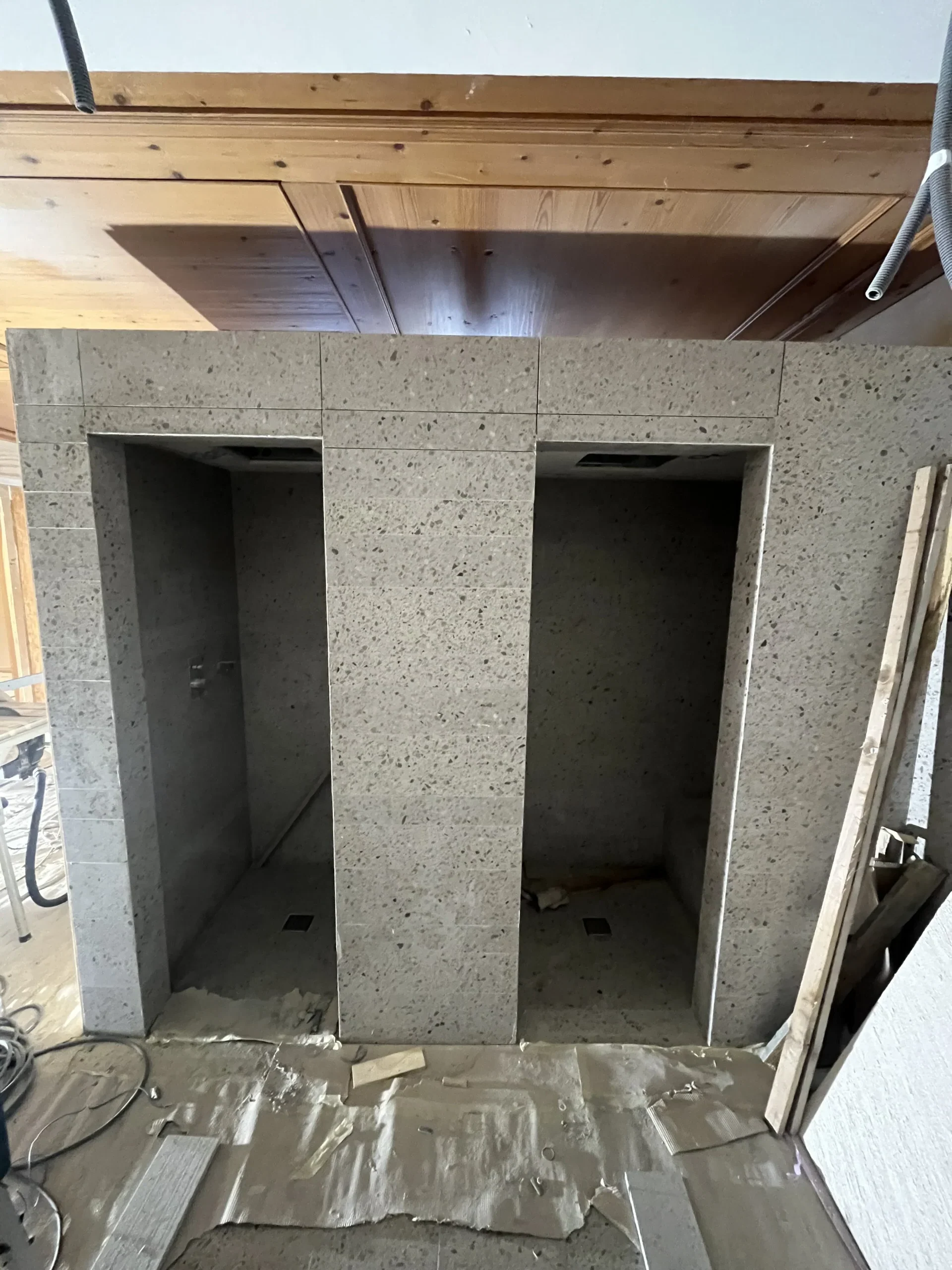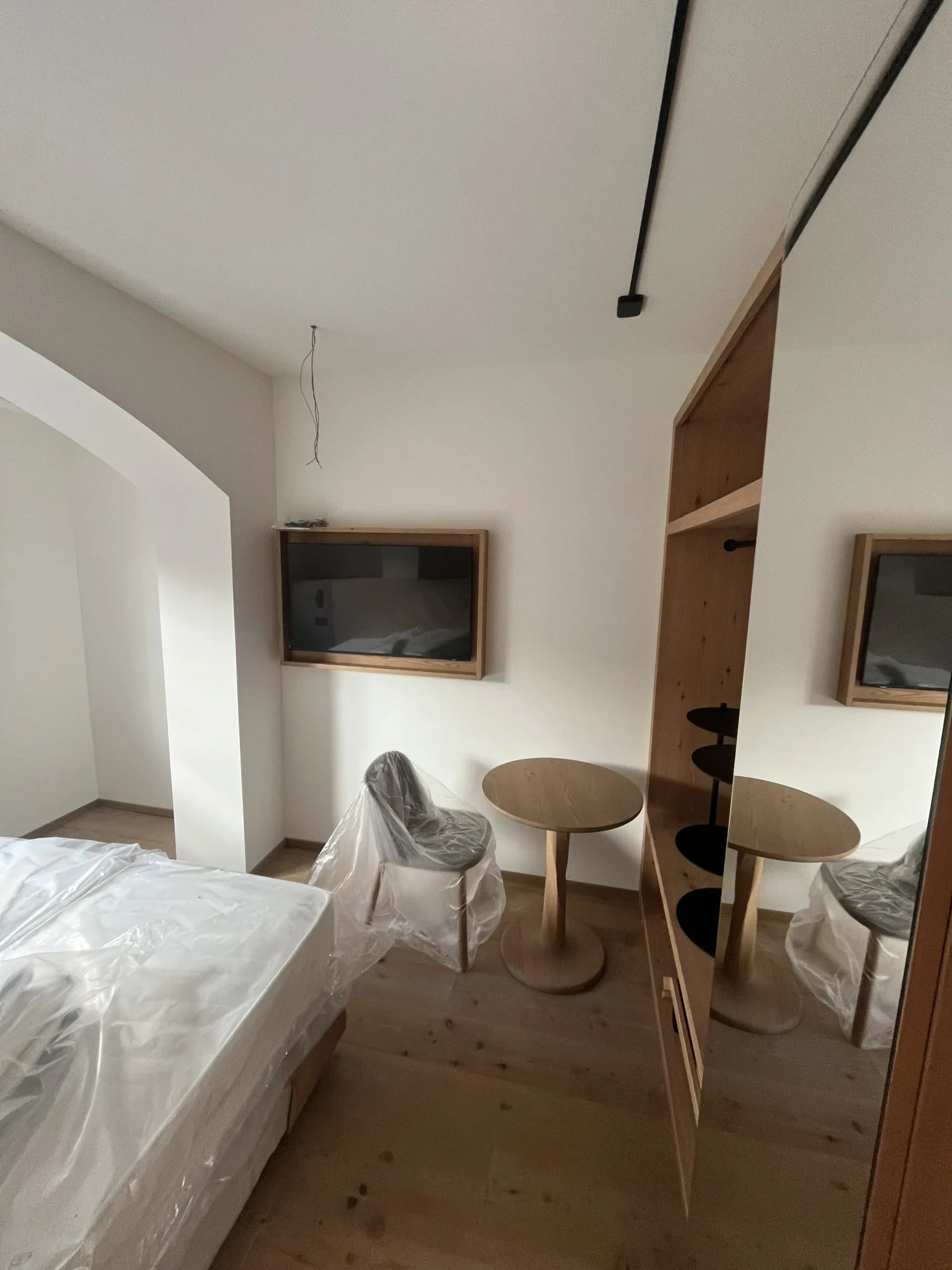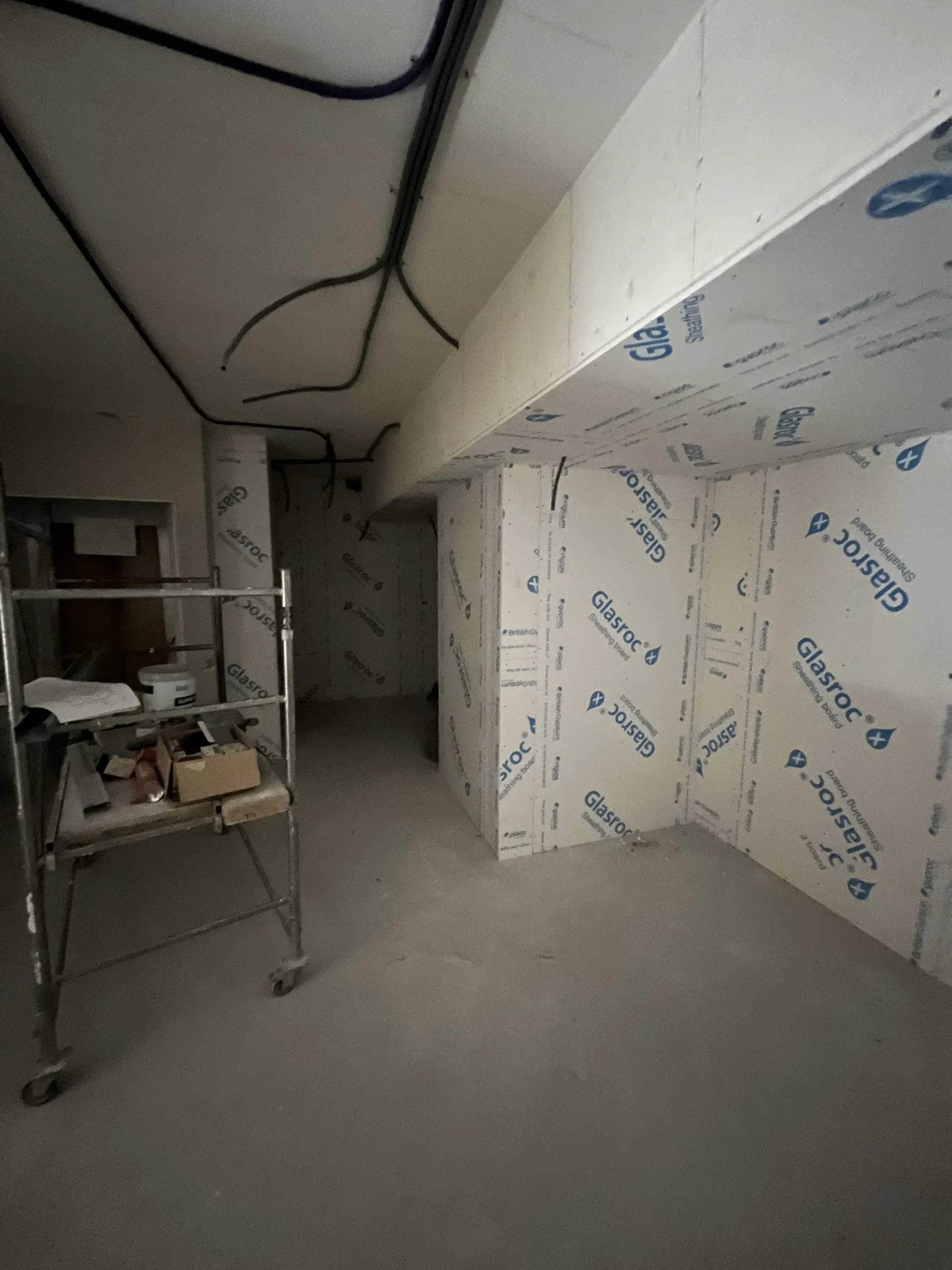 Ristrutturazione ex Hotel Alleghe con demolizione interna e nuovi divisori e rivestimenti in cartongesso. Per la natura della struttura è stato effettuato anche un massiccio intervento di protezione dal fuoco ed un accurato isolamento termico ed acustico dei locali.